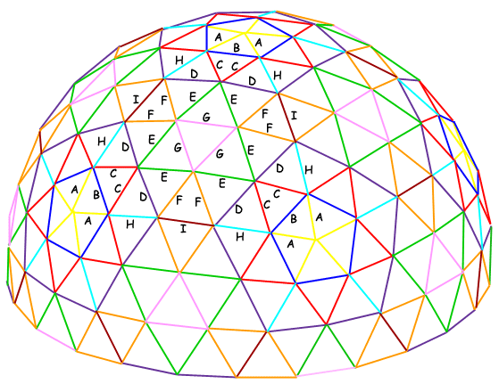 Longueur Barre = Rayon dôme * Coefficient Barre